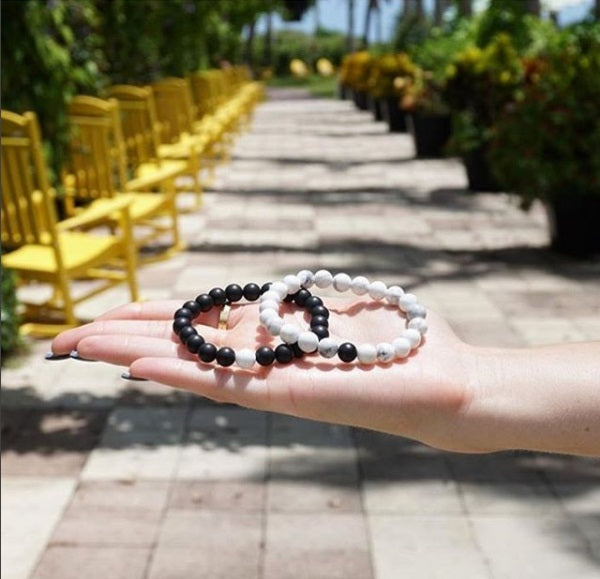 We have created the "Distance Bracelets" to allow those who are far away, to always feel connected and close in the heart. Distance and time away from someone can be difficult, but no matter where you are, let your mother, daughter, sister, friend, or anyone else know that you have a part of her or him with you at any time. You will receive two bracelets. An all white bracelet with a black pearl, and the other one all black with a white pearl. Each of you will carry part of the other wherever you are, no matter what time and weather it is.
